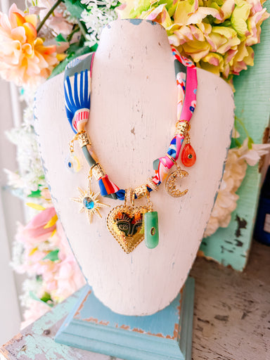 The Love Out Of This World Scarf Charm Necklace brings major cosmic romance energy. A soft scarf detail meets playful charms for a look that feels ...
