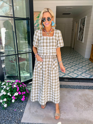 The Spring Fever Gingham Ric Rac Skirt Set is playful, sweet, and full of sunny-day charm. Classic gingham with whimsical ric rac trim gives her a ...