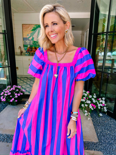 The Lovely Lines Stripe Scallop Midi Dress is all about sweet, flirty charm. Soft stripes and delicate scalloped details give her a fresh, polished...