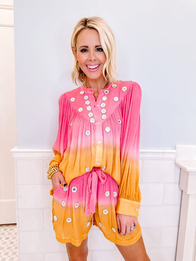 THIS IS A FINAL SALE ITEM The Arkansas Icon Stripe Button Up Top in Red is full of Woo Pig sparkle with her bold sequins, beaded flair, and cheeky...