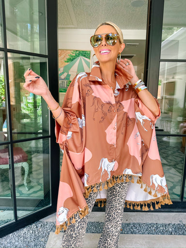 • ON MY HIGH HORSE BUTTON UP TOP - BROWN