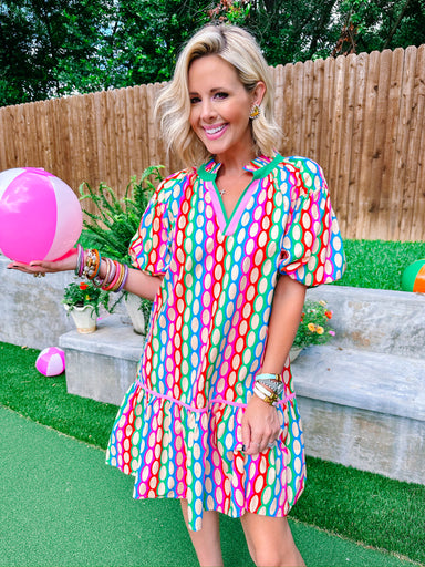 THIS IS A FINAL SALE ITEM Color Theory Geometric Collar Dress - White is a modern classic with a playful twist. Featuring large, graphic squares t...