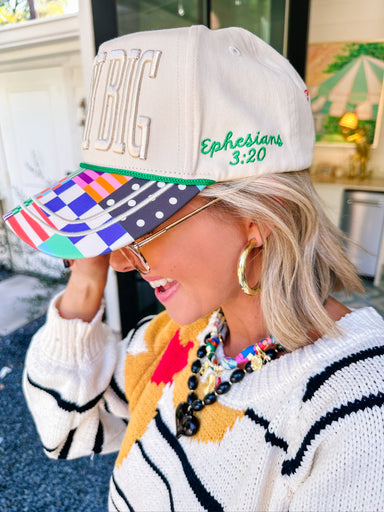 This cute hat mixes bold patterns with an uplifting message. She’s perfect for casual outings, weekend adventures, or anytime you want your faith a...