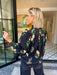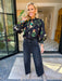 AMONG THE MOON FLOWERS SMOCK NECK TOP - BLACK