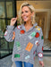 The Basketball Icon Stripe Button Up Top in Black brings sporty style with a sparkling twist. Her sequined details add a touch of glam to a classic button-up design. Pair her with jeans or skirts for a look that’s effortlessly fun and game-day ready.