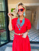 CASSANDRA POPLIN KNIT SKIRT SET - CHERRY RED