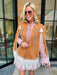 The Cowgirl On Fringe Cape in Camel brings a touch of western charm with her soft suede feel and playful fringe that sways with every step. She’s the perfect way to add a little frontier flair to your everyday look. Pair her with skinny jeans and boots for a cute, country-inspired vibe, or layer her over a dress for a fun twist on night-out style.