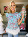 FIORELLA FEATHER FRINGE JACQUARD TOP - BLUE