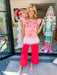The Fiorella Feather Fringe Jacquard Top in PINK brings texture and movement to your wardrobe with a hint of whimsy. Her intricate patterns and fluttering fringe make her perfect for brunches, date nights, or festive occasions when you want to stand out. Pair her with sleek pants or a skirt for a look that’s effortlessly elevated.