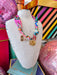 The Liza Multi Charm Scarf Necklace is all about playful details and vibrant style. Her colorful scarf design sets the tone for a fun statement piece. She features seven playful charms including a chili pepper, tiger, heart, and sun. A joyful piece that makes accessorizing feel effortless.