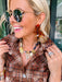 The Misty Multi Charm Scarf Necklace is all about chic versatility with a playful twist. She features a soft scarf design adorned with sparkling charms that catch the light just right. Wear her layered or let her shine on her own for a statement moment. This is the necklace that turns every outfit into something unforgettable.