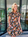 NIGHT FALL FLORALS BUTTON UP DRESS - BLACK