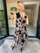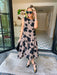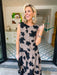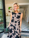 SHADOW OF A THOUGHT FLORAL DROP WAIST MIDI DRESS - BLACK/BROWN