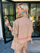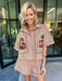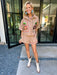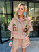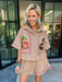 The Turkey Stitch Trim Button Up Collar Top in Tan is ready to help you gobble up all the holiday fun. Her classic button-up style and sparkling turkey motif make her perfect for festive gatherings. Pair her with the matching shorts for a coordinated, playful look.
