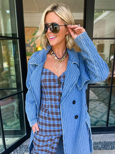 THIS IS A FINAL SALE ITEM The Desiree Denim Textured Trench Coat brings a fresh twist to a timeless classic with her rich texture and laid back de...