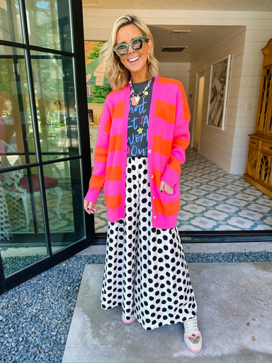 The Straight Up Cozy Stripe Cardigan brings all the comfy vibes with a bold pop of color. Her pink and orange stripes make lounging or layering way...