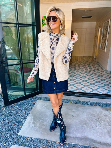 The Layer Up Sherpa Vest in Cream wraps you in soft, plush warmth while keeping your look perfectly polished. She’s the easy throw on piece that in...
