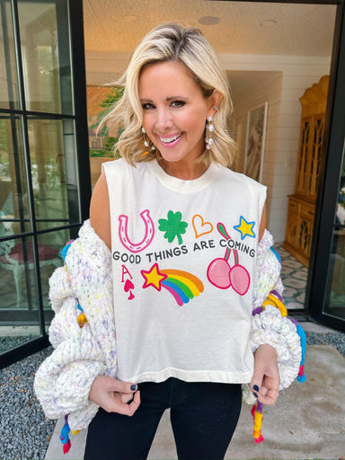 The Good Things Are Coming Muscle Tee in white is your new go-to for effortless feel-good style. With its uplifting message and relaxed muscle fit,...