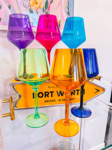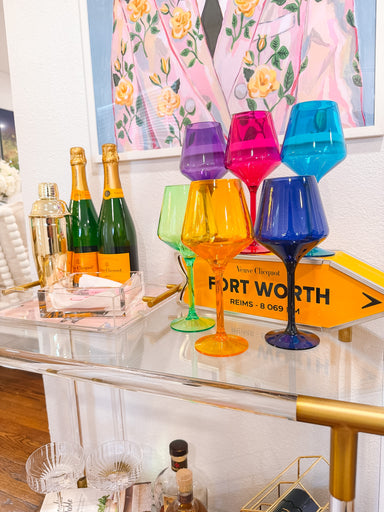The Jeweled Acrylic Wine Glass Set brings vibrant color to every pour. Each glass features a rich jewel tone that makes your table pop in the prett...