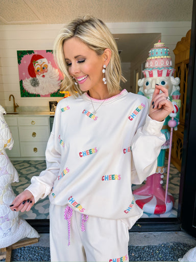 Celebrate cozy season in style with the Cheers Stitch Trim Lounge Set in cream. With soft fabric, contrast stitching, and a relaxed fit, it’s perfe...