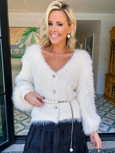 The Carrie Pearl Chain Belt brings bold, modern style with a touch of glamour. Her oversized pearls make a statement while the adjustable chain let...