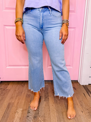 The Hattie High Rise Crop Flare Jeans in Black are your new denim go-to. With a flattering high rise, cropped flare, and sleek black wash, she bala...