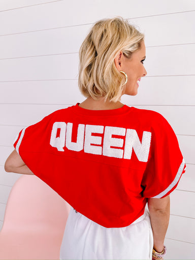 THIS IS A FINAL SALE ITEM The Arkansas Icon Stripe Button Up Top in Red is full of Woo Pig sparkle with her bold sequins, beaded flair, and cheeky...