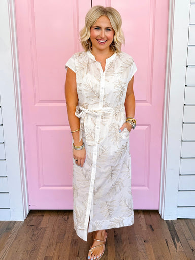 THIS IS A FINAL SALE ITEM The Leaves in the Golden Breeze Button Up Midi Dress Ivory is all about effortless elegance with a touch of sunshine. Her...
