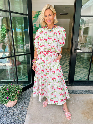 THIS IS A FINAL SALE ITEM The Dance With Me Maxi Skirt Set in Pink is a twirl-worthy duo that’s as fun to wear together as it is to mix and match....