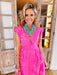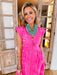 The Cassie Cross Stitch Zip Up Midi Dress is flirty, fun, and full of charm. Sweet pink and delicate cross-stitch details give her playful, feminine vibes. Perfect for brunches, date nights, or girls’ nights out. Pair with boots or heels for a look that’s effortlessly chic and lively.