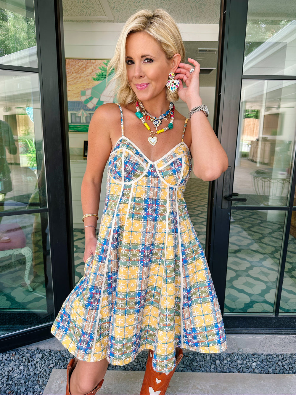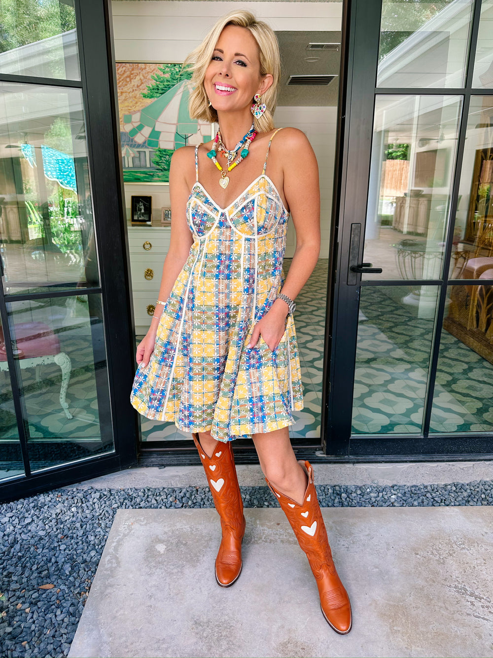 Channel your inner Cher with the Cher Daisy Plaid Bustier Dress. Bold blend of classic plaid and playful daisy details that capture that iconic Clueless spirit. The structured bustier silhouette hugs your shape just right, making her the perfect mix of nostalgic '90s edge and modern femininity. Whether you are headed to the mall or cruising around town this dress just makes you want to say “As if”.