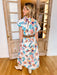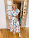 HAPPY GO FLORAL BUTTON UP MIDI DRESS - BLUE/WHITE