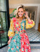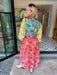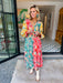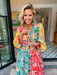 The Riviera Colorblock Blooms Tie Up Midi Dress feels like a getaway in dress form. Bold blooms and colorblock details bring fresh energy with an easy tie up finish. Perfect for spring events, sunny days, or vacation plans. Pair her with sandals for daytime or dress her up with heels and statement earrings.