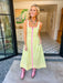 Spring has officially sprung in this green and pink striped midi dress. Bright, cheerful, and full of charm, her midi length is perfect with strappy sandals for a polished look or sneakers for playful, casual vibes. Cheers to spring!