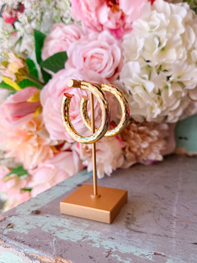 Make a statement with these classic hoops! Beautiful 14k Gold Plated Hoops for a simple, but elegant look! Perfect for all seasons!