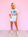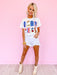 Cheers to this t-shirt! Be the best dressed at the barbecue this summer by pairing with jean shorts, sandals, and stacked jewelry for a cute casual summer outfit!