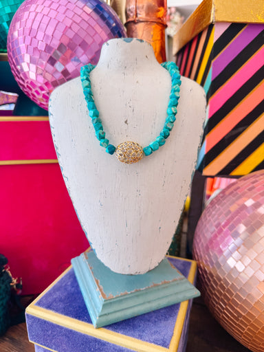 The Chelsie Stone Necklace adds a touch of earthy charm to your collection. Her natural stones bring a pop of color, while the gold pendant adds ju...