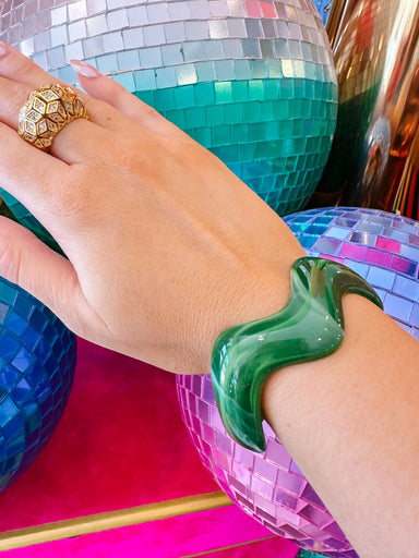 The Wren Wavy Cuff in Green adds a fun, sculptural touch to any outfit. Wear her alone or stack with other bangles for a stylish, layered look. ALL...