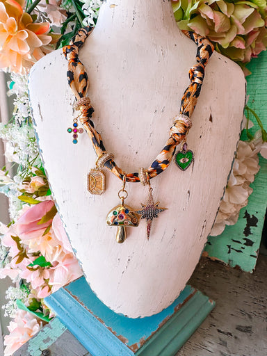 The Bekah Multi Charm Scarf Necklace in cheetah print is fun, playful, and full of personality. Adorned with whimsical charms and pops of sparkle, ...