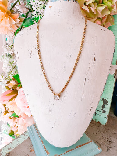 Soft shimmer meets modern grace in the Mallory Diamond Bezel Necklace. A single stone, delicately framed in a sleek bezel, adds that whisper of spa...