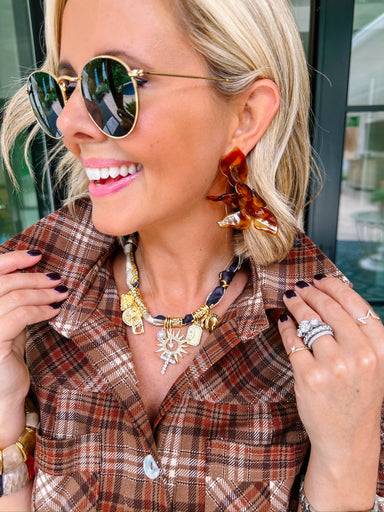 The Corrine Rope Necklace in Navy delivers playful sophistication with her deep-toned cord and seven unique charms that bring character to any outf...
