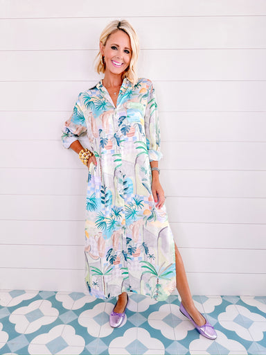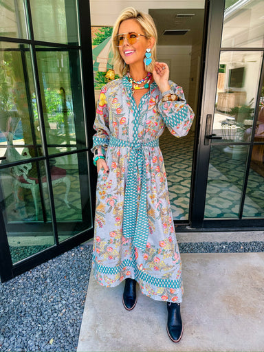 The Josephine Duster Midi Dress in Blue flows with effortless charm, styled with buttons that let her double as both dress and layering piece. She ...