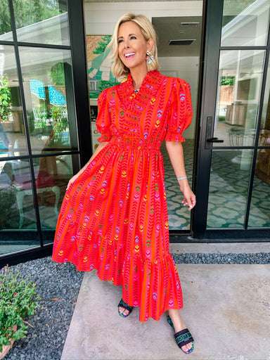 THIS IS A FINAL SALE ITEM The Off the Vine Embroidered Maxi Dress in cream features intricate embroidery, a smocked waist, and ruffles that catch ...