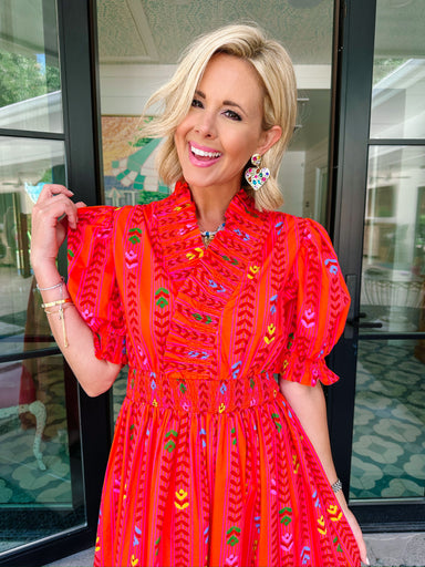 THIS IS A FINAL SALE ITEM The Get This Party Started Dress is ready to kick off all your best moments with her bold pink tiers and flirty tie deta...