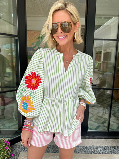 The Smitten Stripe Heart Puff Sleeve Top is sure to make hearts skip a beat. Sweet stripes and puff sleeves give her a flirty, love-at-first-sight ...
