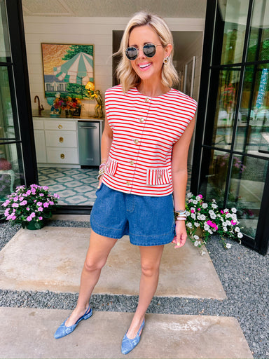 The Sylvie Stripe Top is sweet, flirty, and full of charm. Pink and red stripes meet cute bow details on the cuffs for an extra touch of fun. Perfe...