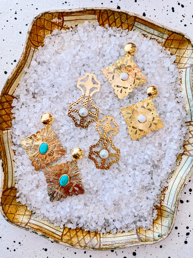 The Penny Earrings in Turquoise bring a sweet pop of color with their tiered heart design that feels flirty and fun. She is perfect for sunny outin...