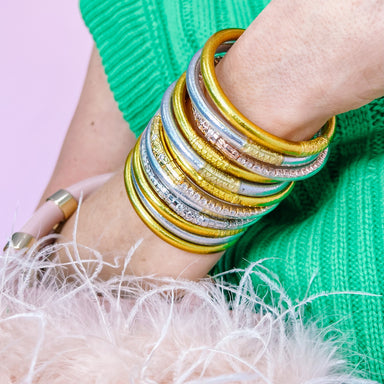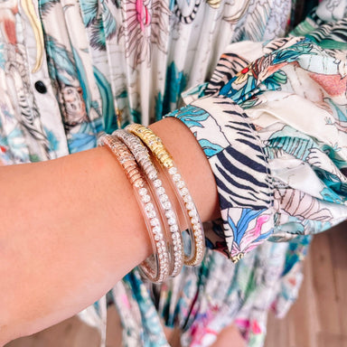 The Warmhearted Wavy Bangle Set of 4 brings playful curves and layered charm to your wrist. Mix and match or wear them all together for a bold, sty...