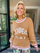 Get cozy and rodeo ready in this brown sweater. Soft, chic, and full of western charm, she’s perfect for chilly rodeo nights or casual outings with a country twist. Pair with jeans, boots, and a cowboy hat to complete your signature western look, or throw on sneakers and leggings for a casual, laid back vibe.