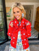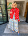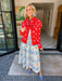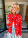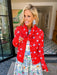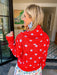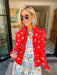 Spotted: a cardigan that’s bursting with bold, playful energy. Red with cheerful blue dots, she’s trend-forward and ready to brighten any outfit. Perfect for any occasion, she looks darling with jeans, skirts, trousers, you name it.